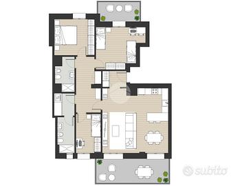 - Due bagni con sanitari sospesi di cui uno finestrato