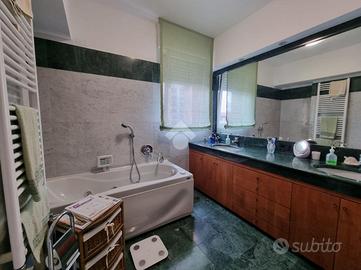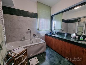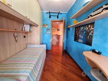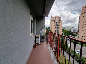 Appartamento sito al quinto piano su sette in palazzina munita di ascensore e che ha concluso i lavoro per la realizzazione del cappotto temico nel 2020. Creato dall'unione di due unità abitative nel 2003, si trova in più che buone condizioni con parquet in tutta casa tranne che nei servizi, infissi in alluminio spessore 10cm doppio vetro con gas argon, pareti interne perimetrali coibentate con FOMGLASS (ABITEMA), porta interne sostituite, impianto elettrico certificato e aria condizionata per un totale di 5 split e 2 motori. Internamente suddiviso in ingresso direttamente del soggiorno doppio con balcone, cucina abitabile, tre camere da letto di cui una con un secondo balcone e due bagni, rispettivamente finestrato con doppio lavandino e vasca idromassaggio e cieco con doccia e lavapanni. A completare il tutto tre nicchie studiate per fungere come ripostigli. Due cantine al piano terreno e due box auto. Libero al rogito. Zona servita da mezzi pubblici, quali la 49,78 e dalla Metropolitana Lilla San Siro a meno di 2 km, supermercati come l'Esselunga di via Novara e la Coop di via Fratelli Zoia, (quest'ultima a 400mt di distanza) e ultimi ma non per importanza, il Pardo delle Cave, Bosco in Citta e il Parco di Trenno.
