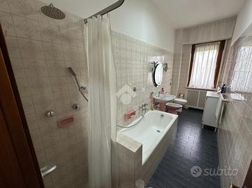 La zona notte comprende due comode camere da letto, di cui una matrimoniale, e un bagno finestrato dotato di doccia e vasca da bagno, oltre a un pratico ripostiglio.