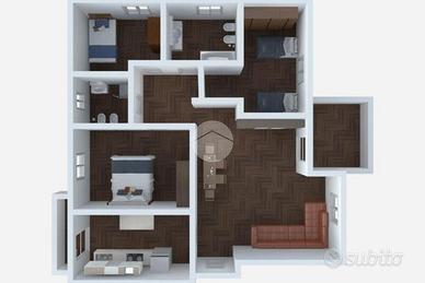 L'appartamento si distingue per l'ottima distribuzione degli spazi e la luminosità naturale che lo caratterizza durante tutto l'arco della giornata. La zona giorno è ampia e accogliente, separata dalla cucina, ideale per chi cerca funzionalità e comfort nella vita quotidiana. La zona notte comprende tre camere da letto ben dimensionate e due bagni finestrati, entrambi comodi e ben rifiniti.