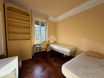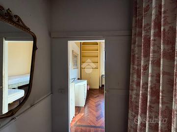 L'appartamento gode di doppia esposizione (sud-ovest e nord-est), che assicura luminosità per l'intera giornata, e presenta soffitti alti 3,30 metri, pavimenti in parquet e raffinati dettagli d'epoca che mantengono intatto il fascino originario.