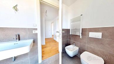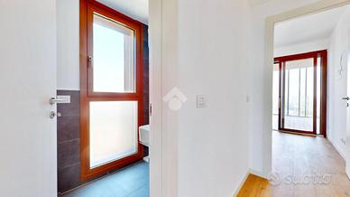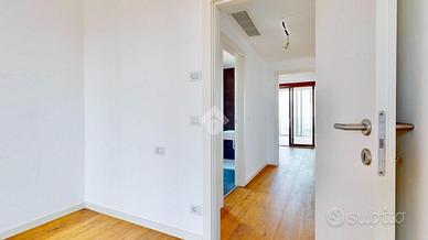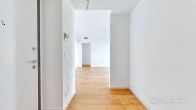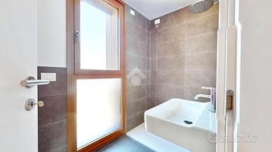 Immobile nuovo, mai abitato, in Classe A2, dotato di aria condizionata centralizzata, riscaldamento a pavimento centralizzato con gestione autonoma, pavimenti in parquet nelle camere e nel soggiorno, in cucina pavimento in gres effetto marmo e pavimenti in gres nei bagni.