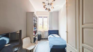 La zona notte comprende tre camere da letto, tra cui la camera padronale di ampie dimensioni è impreziosita dal parquet originale ed infine abbiamo due bagni moderni entrambi con box doccia, di cui uno finestrato. La ristrutturazione è stata eseguita con grande attenzione: i pavimenti sono in gres porcellanato effetto marmo opaco, gli infissi sono in alluminio con doppi vetri, le serrande elettriche assicurano isolamento acustico e sicurezza, ogni ambiente è climatizzato, garantendo il massimo comfort in tutte le stagioni, mentre il riscaldamento centralizzato è dotato di termo-valvole. La doppia esposizione, verso ovest e nord-est, e il piano alto regalano una straordinaria luminosità durante tutto l'arco della giornata. A completare questa soluzione, una cantina privata che offre un utile spazio aggiuntivo per organizzare e custodire tutto ciò che ti serve. Un'occasione ancora più speciale: Milano sarà protagonista del..