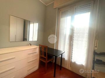 La stanza è luminosissima e dispone di balcone privato, letto matrimoniale, armadio capiente e scrivania, ideale per studenti o giovani lavoratori.