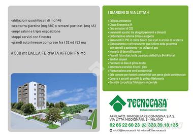 In contesto di nuova realizzazione denominato 'I GIARDINI DI VIA LITTA 4', proponiamo in esclusiva 12 unità abitative in edilizia libera residenziale con classe energetica A4. Le abitazioni saranno composte da quadrilocali di metratura pari a 145mq. Possibilità di scelta fra giardino privato di mq 700 circa, o ampi terrazzi loggiati. Tutte le unità, luminose grazie alla tripla esposizione, saranno dotate di doppi servizi finestrati e grandi autorimesse comprese fra i 30 ed i 50 mq. Possibilità di asservire cantine e posti auto. Zero emissioni di CO2, con impianto fotovoltaico e riscaldamento/raffrescamento con l'utilizzo della geotermia. Spese condominiali contenute. Nelle immediate vicinanze della metro/passante ferroviario AFFORI FN. INIZIO LAVORI PREVISTO SETTEMBRE 2026. MAGGIORI INFORMAZIONI IN AGENZIA