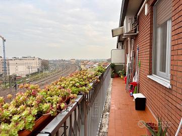 Ortica / vicinanza Città Studi - Vendita quadrilocale ristrutturato con doppi servizi Nel quartiere dell'Ortica proponiamo in vendita quadrilocale ristrutturato all'ultimo piano di uno stabile degli anni '70. L'affaccio con vista ampia e senza barriere architettoniche permette a questa casa di beneficiare di molta luce naturale donando il grande senso di libertà di una vera e propria oasi urbana. Infatti, nonostante la vicinanza alla ferrovia, l'appartamento è sorprendentemente tranquillo grazie all'isolamento acustico che donano i suoi serramenti. Il disimpegno d'ingresso divide tutti gli ambienti della casa. La zona living, di pianta regolare, è costituita da un soggiorno con il relativo arredo, il divano e dalla cucina con tavolo da pranzo. Da qui si accede al lungo balcone che percorre l'intera lunghezza dell'appartamento. La camera da letto matrimoniale è ampia e dotata di bagno pertinenziale con box doccia e finestra. La seconda camera è anch'essa spaziosa e delle medesime dimensioni della matrimoniale. La terza camera è singola e beneficia dell'affaccio al secondo balcone. Il bagno padronale è dotato di tutti gli elementi tra cui un altro box doccia. L'ultimo piano, i numerosi punti luce e la tripla esposizione rendono l'appartamento particolarmente luminoso e arieggiato. Il riscaldamento è centralizzato a radiatori ed è presente l'aria condizionata. I serramenti sono in pvc e dotati di triplo vetro; la porta d'ingresso è blindata. Il videocitofono garantisce ulteriore sicurezza. Completa la soluzione la cantina di pertinenza. Il condominio, inoltre, è dotato di ascensore e portineria. La zona è ben collegata con il resto della città grazie a diverse linee di superficie (bus 39, 54, 924). La stazione ferroviaria di Lambrate e l'omonima fermata della metropolitana linea verde distano 5/10 minuti di bus/auto. La posizione risulta comoda anche per raggiungere in pochi minuti la Tangenziale Est, l'Aeroporto di Lina