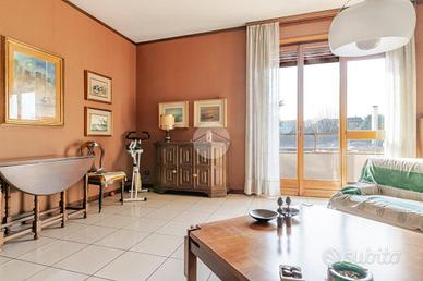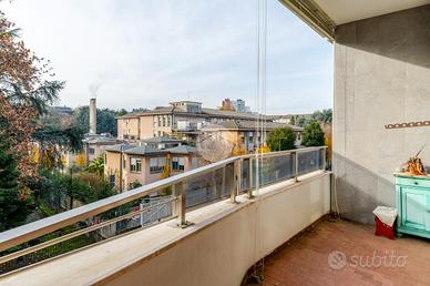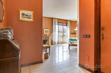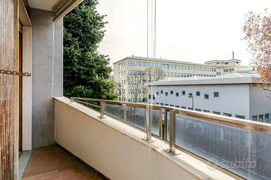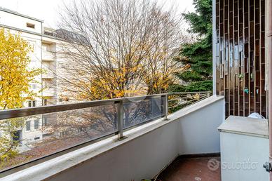 La residenza si sviluppa su una superficie di circa 130 mq, ottimamente distribuiti. L'ingresso si apre su un disimpegno, dal quale abbiamo l'accesso ai diversi ambienti dell'abitazione. Sulla destra troviamo un ampio salone di rappresentanza, finestrato e da cui tramite una porta-finestra, abbiamo accesso al primo dei tre spaziosi balconi che compongono l'appartamento, con affaccio tranquillo e gradevole sulla corte interna. Le dimensioni generose del balcone permettono di allestire una zona relax con tavolino e sedute. Proseguendo sulla sinistra, in posizione opposta rispetto alla zona giorno e affacciata sul verde del giardino condominiale, si accede alla cucina abitabile, anch'essa dotata di accesso al secondo ampio balcone. Dal corridoio frontale all'ingresso si accede infine alla zona notte, composta da tre spaziose camere matrimoniali, anch'esse finestrate, due delle tre camere dispongono inoltre dell'accesso diretto al terzo ed ultimo balcone dell'appartamento. Completano la proprietà i doppi servizi, uno