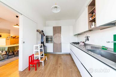 Via Alberto da Gandino: Nel cuore del quartiere "Baggio", adiacente a Via Maffeo Bagarotti ed a pochi passi da Via Valsesia, oltre che a pochi metri dalla fermata di vari mezzi di superficie (58/76/67/433/NM1) che in meno di 15 minuti conducono anche alla fermata della metropolitana M1 BISCEGLIE che permette di arrivare al centro della città; proponiamo in contesto residenziale degli anni '60, un AMPIO TRILOCALE RISTRUTTURATO con TRIPLA ESPOSIZIONE, posto al terzo ed ultimo piano in stabile dotato di ascensore e con BOX SINGOLO comrpeso nel prezzo di richiesta. La zona risulta tranquilla e ben servita, fornita di tutti i servizi di prima necessità come supermercati, farmacie, scuole, poste, bar, ristoranti. Inoltre, il quartiere è noto per essere tranquillo, circondato da parchi e zone verdi, ma allo stesso tempo ben collegato con il centro città grazie ai mezzi di trasporto pubblico. La zona si prepara a diventare oggetto di un'importante trasformazione e sviluppo, che porterà il valore delle proprietà ad aumentare nel tempo, basti pensare alla futura fermata della metropolitana M1, proprio all'interno del quartiere. L'appartamento risulta essere così composto: Ingresso diretto in ampia e luminosa zona soggiorno, doppiamente esposta e con, sul lato destro, l'accesso al lungo primo balcone della casa, con affaccio tranquillo sulla Via Alberto da Gandino. Sul lato sinistro della zona soggiorno, con affaccio parallelo ed opposto, separata da una colonna, troviamo poi la sala da pranzo, anch'essa dotata di balcone. Con accesso diretto dalla sala da pranzo, con medesima esposizione ed affaccio, accediamo poi all'ampia e luminosa cucina abitabile anch'essa con accesso al medesimo balcone della sala da pranzo. Segue la zona notte, alla quale accediamo tramite un comodo disimpegno, che si sviluppa con: la prima camera con stessa esposizione del soggiorno e con il balcone comunicante, la seconda camera, la matrimoniale, con affaccio opposto e dotata di finestra, ed in