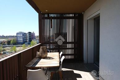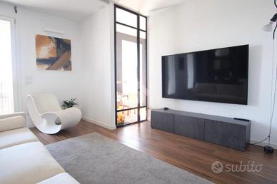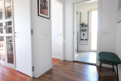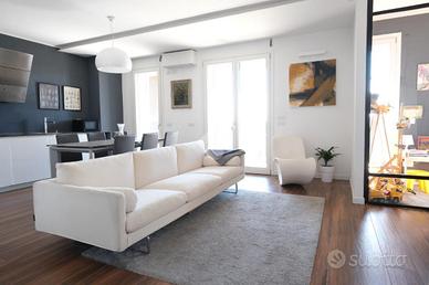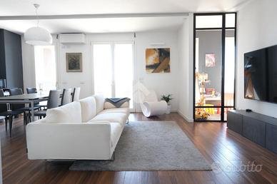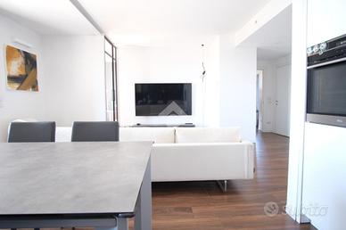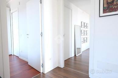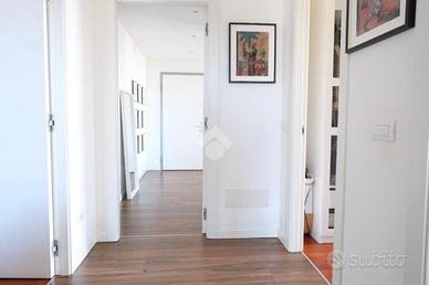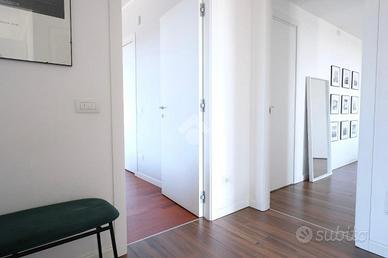 RUBATTINO - Vendita quadrilocale in condominio di recente costruzione con doppio terrazzo, cantina e ampio box auto. Nel cuore del quartiere Rubattino, zona est di Milano, proponiamo in vendita un elegante appartamento quadrilocale facente parte del progetto - Livin in the blue - firmato dallo studio di architettura Alfonso Femia che si inserisce all'interno di un'area attualmente oggetto di una complessiva trasformazione e riqualificazione. Il condominio offre spazi comuni, aree verdi e un vivace spirito di comunità, chiave portante del progetto Cohabitat Lambrate. La casa che presentiamo è caratterizzata da un design moderno ed elegante. L'ingresso introduce la zona giorno open space con cucina a vista Poliform, ampia zona pranzo e soggiorno con zona tv. La luce naturale incornicia l'ambiente, la vista prospettica del terrazzo loggiato amplifica gli spazi verso l'esterno, molto piacevole durante la bella stagione. La zona notte comprende tre camere da letto. La matrimoniale, con bagno annesso dotato di vasca, si affaccia sul secondo terrazzo loggiato, più raccolto e riservato per intimi momenti di relax. La seconda camera è doppia e anch'essa molto luminosa. La terza è attualmente adibita a cabina armadio/studio. Una delle pareti confinanti con il soggiorno è costituita da un serramento vetrato a tutta altezza che permette sia alla luce di filtrare, sia di collegare direttamente i due ambienti rendendo gli spazi più fluidi. Il bagno principale è dotato di box doccia e di tutti gli elementi. I pavimenti sono in parquet, nei bagni i rivestimenti sono in ceramica. Tutti i serramenti sono porte/finestre in legno/alluminio con doppi vetri, dotati di zanzariere e tapparelle elettriche; la porta d'ingresso è blindata. Tra le dotazioni è presente l'impianto domotico, l'antifurto e la vmc (ventilazione meccanica controllata) che garantisce un costante ricambio d'aria naturale. Il riscaldamento è di tipo geotermico a pavimento gestibile autonomam