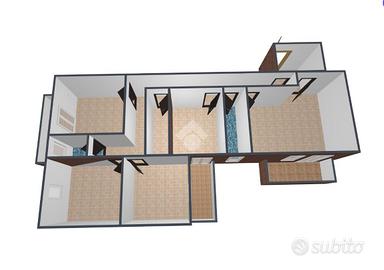 In condominio anni '70 l'immobile presenta le rifiniture dell'epoca di costruzione. Frontalmente all'ingresso troviamo lo spazioso salone, adiacente, come avveniva nelle costruzioni dell'epoca trova posto la comoda cucina, proseguendo, in fondo al corridoio, in posizione riservata tre ampie camere da letto. Non mancano infine due bagni e l'utile ripostiglio.