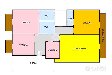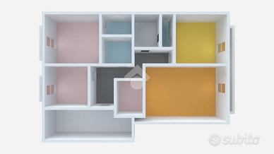 L'ingresso conduce direttamente su un corridoio che disimpegna i vari ambienti. E nello specifico troviamo un ampio soggiorno di 35 mq ca., due camere da letto matrimoniali, una cameretta e una cucina abitabile di 16 mq ca.