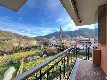 Moconesi - Centro - Appartamento sito al secondo piano senza ascensore in palazzina ordinata. L'immobile è composto da ingresso nella sala con angolo cottura a vista. La zona notte comprende due camere da letto e un bagno finestrato ogni vano della proprità ha accesso su una delle tre balconate. Il riscaldamento è termoautonomo con basse spese di gestione. Completa la proprietà posto auto condominiale e un terreno ad uso esclusivo sul retro del palazzo.