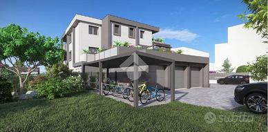 In palazzina di prossima realizzazione composta da 6 unità abitative, proponiamo maisonette sita al piano terra con portico e verde esclusivo di 225 mq.