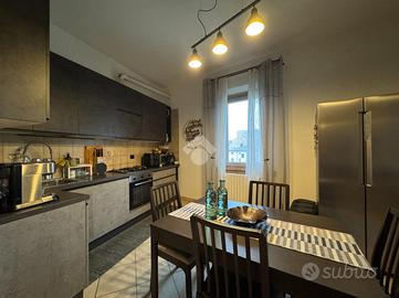 In via Emilia Ovest, si propone un quadrilocale di 110 metri quadrati, situato all'ultimo piano di un edificio ben tenuto.
