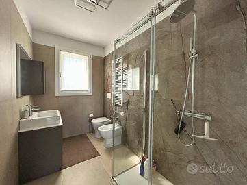 L'intero appartamento è servito da riscaldamento a pavimento; pavimentazione in gres nella zona giorno e parquet nella zona notte; infissi sono in triplo vetrocamera, tapparelle antisfondamento motorizzate e controllabili da remoto.