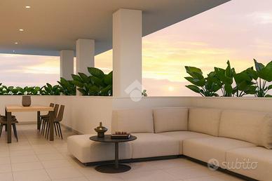 L'appartamento quadrilocale è composto da un'ampia zona giorno con soggiorno e sala da pranzo più cucina separata, la zona notte invece da una camera matrimoniale di 14 mq e due singole entrambe di 12 mq più un ripostiglio posto a ridosso del disimpegno e due bagni con doccia. Dal soggiorno, dalla cucina, dalla camera matrimoniale e da una delle due singole si potrà accedere ad un comodo terrazzo.