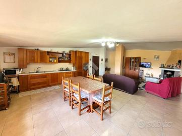 Moiano - In parco residenziale, appartamento mansardato, servito da ascensore e rampa per persone con mobilità ridotta, completo di posto auto coperto. L'abitazione si apre su una zona living con soggiorno con camino e cucina a vista, disimpegno che conduce al bagno della zona giorno. La zona notte comprende due camere matrimoniali, una cameretta, un secondo bagno con lavanderia e accesso al balcone. Soluzione comoda e ben distribuita.