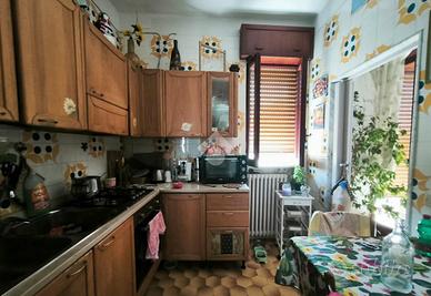 L'appartamento, di ampia metratura, è composta da uno spazioso soggiorno con affaccio esterno, cucinino con tinello e bagno di servizio, un'ampia camera da letto matrimoniale, camera dei ragazzi, bagno padronale ed una ulteriore piccola stanza finestrata.