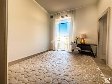 Trattasi di luminoso quadrilocale di circa 124 mq. composto da ingresso in ampio disimpegno, corridoio, tre camere da letto di cui una matrimoniale, soggiorno, ripostiglio, bagno, cucina con accesso al soppalco e cantinola sul lastrico solare. Cinque balconi con tripla esposizione garantiscono luminosità agli ambienti.