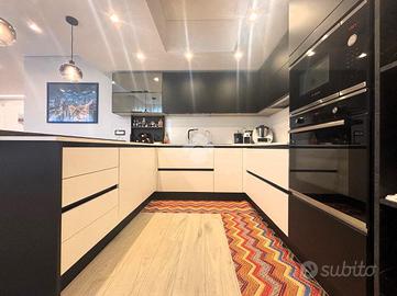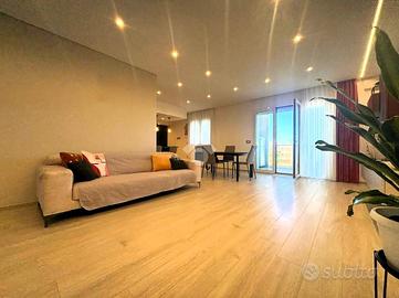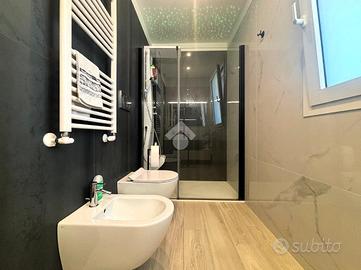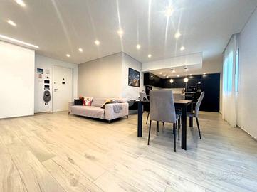 Trattasi di rifinito appartamento di circa 124 mq. composto da ingresso in open space con angolo cottura, disimpegno, bagno, ripostiglio, tre camere da letto di cui una matrimoniale dotata di bagno in camera e due balconi verandati con doppia esposizione. Completa la proprietà ampio box auto di circa 112 mq. posto al piano S2.