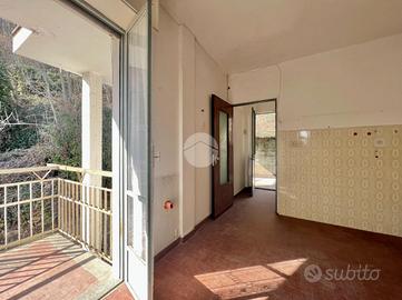una camera al tempo adibita a cucina con possibilità di accedere al balcone che gode di una bella vista attraverso una porta finestra, ed infine, l'ultima stanza.