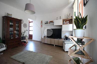 L'unità abitativa si trova nella borgata di Testona, a pochi passi da ogni tipologia di servizio. Al piano terra sono presenti il soggiorno, dal quale si può accedere alla zona esterna in comune, la cucina, un bagno ed un sottoscala utilizzato come sgabuzzino. Al piano superiore ci sono le due camere da letto matrimoniali, una delle quali ha l'accesso ad un balcone, ed un secondo bagno. La soluzione abitativa è stata ristrutturata cinque anni fa. Ogni ambiente è dotato di aria condizionata e gli infissi sono in legno doppio vetro. Completa la proprietà un cortile di circa 10 mq recintato.
