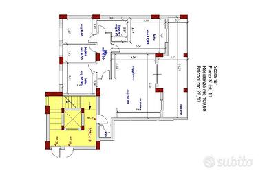 La tipologia qui rappresentata è un quadrilocale al piano terzo raggiungibile con ascensore, così suddiviso: ampio soggiorno con cucina a vista, tre camere da letto,