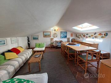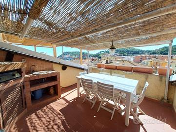Porto Ercole, in Via Nuova a 300 mt dal porto, proponiamo un delizioso appartamento di mq 115 sito ai piani secondo e terzo con annessa terrazza panoramica. L'immobile, molto luminoso, è così composto: al primo livello troviamo l'ingresso, un soggiorno/letto separabile dall'ingresso mediante parete scorrevole, corridoio con armadiature a muro, due ampie camere e due comodi bagni entrambi con doccia e rivestimenti dipinti a mano. Una comoda scala in legno conduce al secondo livello dove trovano posto un ampio soggiorno, la cucina su misura: da questa si accede ad un particolare vano intermedio tra i due piani munito di un letto ed un ulteriore piccolo bagno con doccia. Completa la proprietà un bel terrazzo abitabile ed attrezzato, con vista sul porto. L'immobile è caratterizzato da una grande funzionalità e piacevole spontaneità, quello che ci si aspetta da una casa al mare; è stato ristrutturato a fine anni 2000 ed è munito di impianti di condizionamento caldo/freddo, infissi con vetrocamera e pavimentazione in cotto. In conclusione, una soluzione di sicuro interesse adatta anche per attività ricettiva.