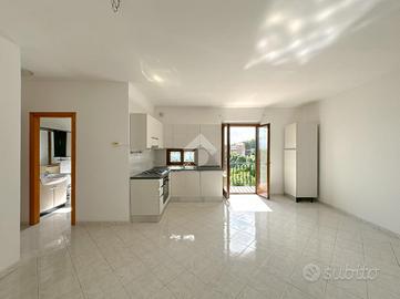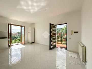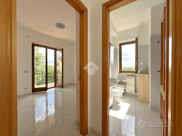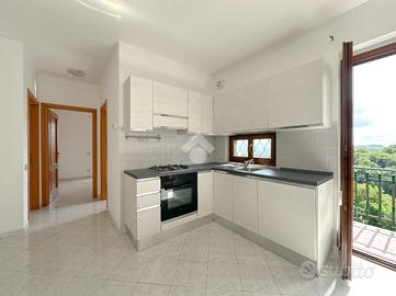 L'ingresso si apre su un accogliente soggiorno con angolo cottura, dal quale si accede direttamente a un balcone panoramico, dotato di zona caldaia e lavatrice.