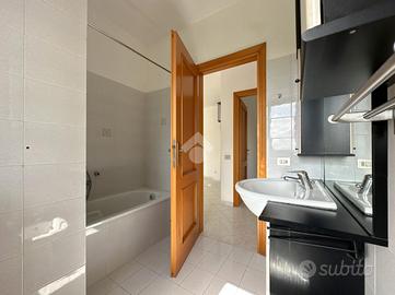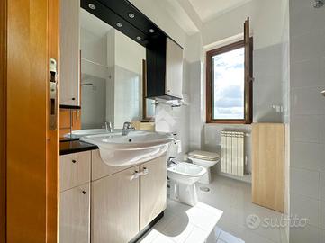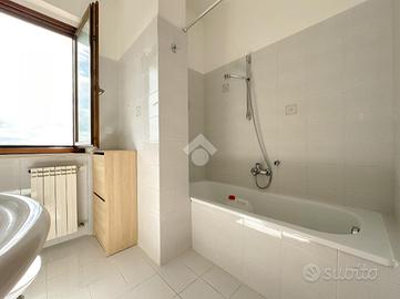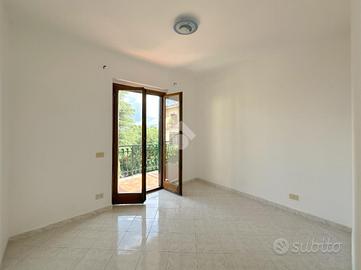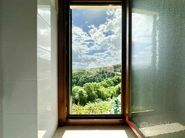 La zona notte ospita una camera matrimoniale e una cameretta con accesso diretto a un secondo balcone. Completa il piano un bagno finestrato con vasca.