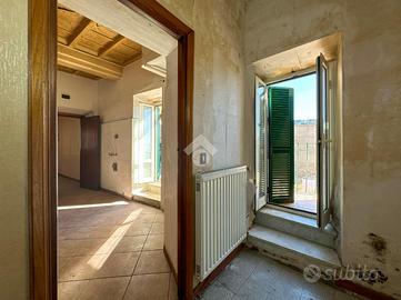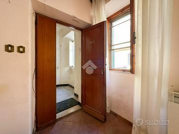 L'ingresso apre su un ampio e luminoso salone, con affaccio su via P. Martini. La zona giorno è dotata di un'ampia cucina separata, abitabile e dotata di camino.