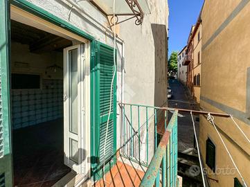 Stesso panorama è quello di cui gode il balcone in parte verandato ed ospitante - secondo il criterio di un'epoca ormai passata - i servizi igienici.