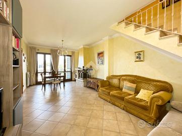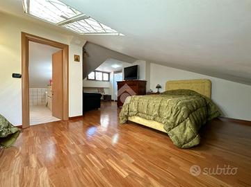 In via delle Pedicate, in una posizione servita e molto vicina al centro di Monte Compatri, proponiamo in vendita un appartamento angolare di prestigio posto al terzo piano di una palazzina servita da ascensore. L'immobile si sviluppa su due livelli e, entrando nella proprietà, si accede a un curato giardino in parte pavimentato e in parte verde, suddiviso in più appezzamenti, dotato di punto acqua. La zona giorno è composta da un ampio salone doppio con camino funzionante e da una cucina abitabile separata, con uscita diretta sul terrazzo panoramico, ideale per momenti di relax e convivialità, completo di tende da sole su tutti i lati, punto acqua e caratterizzato da un'ottima esposizione che garantisce sole diretto dalla mattina fino al tardo pomeriggio. Attraverso un comodo disimpegno si raggiunge la camera matrimoniale, con accesso diretto al giardino, e un bagno finestrato con box doccia. Una scala ci conduce al piano superiore dove troviamo una mansarda attualmente organizzata con due letti singoli, perfetta sia come zona notte aggiuntiva sia come ambiente living, oltre a un secondo bagno finestrato con vasca idromassaggio; il piano è dotato di riscaldamento autonomo tramite sistema AirMac ad aria calda. L'immobile presenta infissi in legno con doppio vetro, zanzariere, grate di sicurezza, videocitofono, parabola e connessione internet su entrambi i livelli; la lavatrice è posizionata sul terrazzo in uno spazio esterno coperto. Lo stato interno ed esterno è ottimo e completa la proprietà un comodo box auto di 17 mq raggiungibile direttamente con ascensore. Le spese condominiali ammontano a circa €105 mensili. Il centro abitato di Monte Compatri è raggiungibile anche a piedi, la posizione è servita e proprio di fronte abbiamo un supermercato e un parcheggio coperto utile per amici e parenti. L'immobile è libero da subito. Per maggiori dettagli, vi invitiamo a contattarci o a recarvi presso il nostro ufficio in Piazza Marco Mastrofini 10, Monte Co