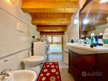 Due bagni ben rifiniti e due terrazzi completano la parte abitativa, offrendo momenti di benessere all'aperto e spazi aggiuntivi da vivere in ogni stagione.