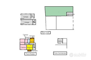 Poi al piano terra abbiamo due ampi garage, una rimessa esterna e un giardino privato.