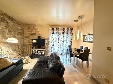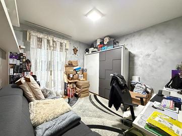 Si entra nell'ingresso, il quale divide l'ampio soggiorno dalla cucina semi-abitabile, entrambi con accesso al spazioso terrazzo. Vi è anche un ripostiglio.