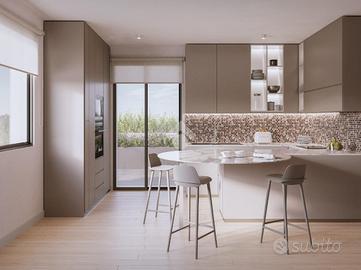 La soluzione verrà consegnata alla fine del 2026/primi del 2027 e dispone di varie metrature ancora possibili anche con giardini privati.