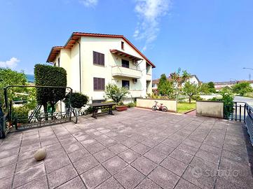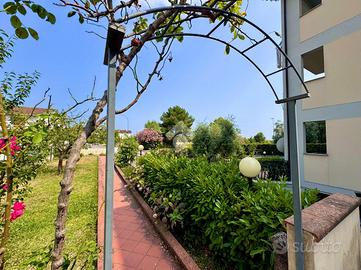 L'ingresso si apre su un ampio soggiorno, accogliente e luminoso, che si affaccia su un grande terrazzo abitabile, perfetto per momenti di relax all'aperto. Da qui, si accede anche a una porzione di giardino, che arricchisce ulteriormente lo spazio, creando un angolo verde dove trascorrere piacevoli giornate. La cucina, separata ma comunque vicina al soggiorno, è un comodo cucinotto, funzionale e ben distribuito.