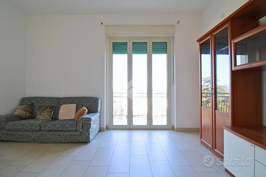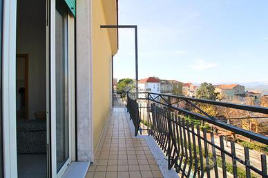 La zona giorno, ampia e luminosa, si apre su un balcone che offre una vista panoramica sulle montagne e sul mare, creando un ambiente ideale per momenti di relax. La cucina semi abitabile, anch'essa dotata di balcone, è perfetta per chi ama cucinare in un ambiente arioso e ben illuminato.