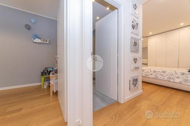 Un disimpegno, divide la zona giorno dalla zona notte, composta da tre camere da letto matrimoniali, ciascuna con accesso diretto al terrazzo, accessoriato di locale tecnico con predisposizione per lavatrice esterna e boiler dell'acqua da 200L e due servizi finestrati di cui uno en suite completo di box doccia in cristallo e rubinetteria GESSI, l'altro dotato di vasca (Villeroy & Boch) , sanitari Catalano e rubinetteria Bellosta. Le porte interne Flessya in legno lavorato impreziosiscono ulteriormente l'immobile.