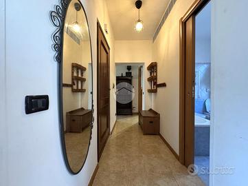In una delle aree più esclusive e riservate, più precisamente in Via Liri, a pochi passi dai principali servizi, proponiamo in vendita un quadrilocale di circa 110 mq, situato al primo piano di una curata palazzina in tinta. L'ingresso si apre su un disimpegno che ci conduce ad un ampio e luminoso soggiorno valorizzato da una porta finestra, dal quale è possibile accedere direttamente al balcone, adiacente alla zona living si sviluppa una spaziosa cucina abitabile, illuminata da una graziosa finestra. La zona notte, ben distribuita, è composta da una camera matrimoniale con balcone privato, due camerette, un pratico ripostiglio e due servizi: uno finestrato, dotato di vasca e soppalco, l'altro completo di box doccia. L'immobile, è dotato di numerosi comfort: porta blindata, infissi in doppio vetro, zanzariere, condizionatore e termosifoni in tutti gli ambienti. A completare la proprietà, vi è una corte esterna privata provvista di cancello automatico nel quale è possibile posteggiare la propria auto fino ad esaurimento posti, Attraversando questo spazio si raggiunge un'ulteriore unità abitativa indipendente, un monolocale posto al piano terra composto da un luminoso soggiorno con cucina a vista e da un servizio finestrato con box doccia, Anche questa unità è dotata di infissi in doppio vetro, porta blindata e condizionatore.