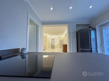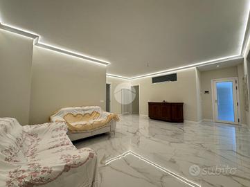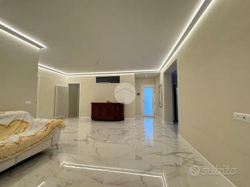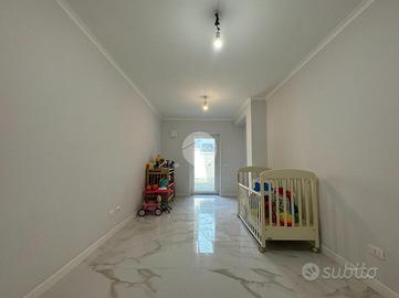 Nel cuore di Monterotondo, in posizione centrale e comoda a tutti i servizi, proponiamo in vendita un ampio appartamento al piano terra completamente ristrutturato nel 2024, caratterizzato da spazi generosi, finiture moderne e totale indipendenza. L'immobile si sviluppa su una superficie di circa 160 mq ed è stato oggetto di una ristrutturazione completa che ha valorizzato ogni ambiente con materiali di qualità e soluzioni contemporanee. Gli eleganti rivestimenti in grès effetto marmo, le linee pulite e l'illuminazione studiata donano agli spazi un'atmosfera raffinata e accogliente. La zona giorno si presenta ampia e luminosa, ideale per vivere momenti di convivialità e relax, mentre la cucina abitabile con penisola rappresenta uno spazio funzionale e perfetto per la vita quotidiana. La distribuzione interna comprende inoltre tre camere da letto, uno studio, una lavanderia e un locale tecnico di circa 20 mq, offrendo comfort e praticità per tutta la famiglia. Uno dei punti di forza della proprietà è la corte esterna privata, uno spazio riservato dove poter trascorrere piacevoli momenti all'aperto e che consente il parcheggio fino a tre auto all'interno della proprietà. L'appartamento dispone di doppio ingresso, sia da Via XX Settembre che da Via Olimpia, con cancello elettrico automatizzato e due accessi pedonali, garantendo praticità e indipendenza. Tra le dotazioni troviamo inoltre infissi in doppio vetro con apertura vasistas, persiane, zanzariere, impianto d'allarme, predisposizione per impianto fotovoltaico e ricarica per auto elettrica. Un ulteriore vantaggio è l'assenza di spese condominiali. Una casa che unisce ampiezza, comfort moderni e indipendenza, perfetta per chi desidera vivere nel centro di Monterotondo senza rinunciare alla privacy e alla qualità degli spazi.