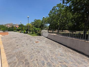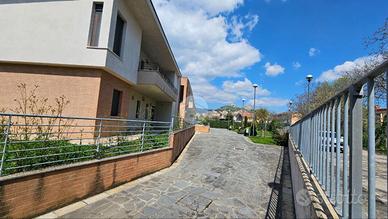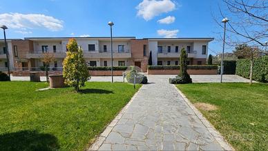 Lo spazio condominiale esterno si presenta curato, servito da impianto di irrigazione, doppio accesso carrabile e pedonale e posti auto per gli ospiti.