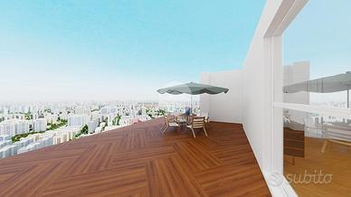 Nuova palazzina in costruzione a Montesilvano - Consegna Giugno 2026 A due passi dal mare e dalla Strada Parco nasce una palazzina moderna di 5 piani, pensata per offrire il massimo comfort abitativo e un altissimo risparmio energetico. Ogni appartamento sarà dotato di pompe di calore, impianto fotovoltaico e cappotto termico, per vivere in un ambiente efficiente e sostenibile. Gli interni garantiranno il massimo benessere grazie al sistema idronico caldo/freddo in ogni stanza, agli infissi a profilo acustico con argon e zanzariere, garantendo un'insonorizzazione avanzata. Non mancano sicurezza e praticità, con videocitofono, portone blindato e finiture di qualità. Inoltre, gli appartamenti verranno consegnati completamente arredati, con la possibilità di personalizzare le finiture interne secondo i propri gusti ed esigenze. Acquistando questi appartamenti, sarà possibile usufruire del Sisma Bonus, con una detrazione fiscale di circa 40.000 € in 10 anni. Una soluzione ideale come casa al mare, residenza principale o investimento. L'appartamento si sviluppa su 130 mq composto da un soggiorno con angolo cottura, tre camere da letto, due bagni e due terrazzi situato al 5° ed ultimo piano.