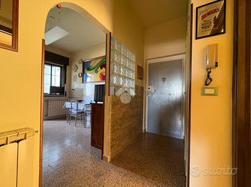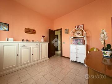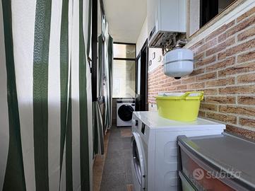 L'ingresso è nella zona giorno composta da cucina abitabile con veranda ad uso lavanderia e ampio soggiorno con balcone. Un disimpegno divide la zona notte composta da camera matrimoniale, cameretta, comodo ripostiglio finestrato e bagno finestrato dotato di box doccia.