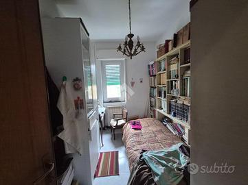 L'immobile è posto al quarto piano, ha ingresso in vano arredabile, il disimpegno conduce alla cucina abitabile, alle due camere utili e al soggiorno, il bagno è dotato di finestra e box doccia.