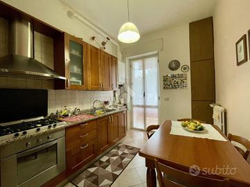 Zona San Fruttuoso - Ampio appartamento con cucina abitabile e posto auto coperto In zona San Fruttuoso, proponiamo in vendita un ampio appartamento di circa 110 mq, situato al piano rialzato di un edificio con solo quattro unità abitative. L'abitazione offre spazi ampi e ben distribuiti: l'ingresso conduce a un luminoso soggiorno, cucina abitabile, entrambi affacciano su un balcone con vista sul giardino condominiale. La zona notte comprende due camere matrimoniali, di cui una con balcone privato, oltre a una cameretta. A servizio dell'appartamento si trovano due bagni finestrati, uno con vasca e uno con doccia. L'immobile è dotato di impianto di aria condizionata, per un clima ideale in ogni stagione. All'esterno, un curato giardino condominiale offre uno spazio verde condiviso tranquillo e piacevole, mentre un posto auto coperto e riservato aggiunge ulteriore comodità. Questa soluzione rappresenta un'ottima opportunità per chi cerca una casa spaziosa e funzionale in una zona servita e ben collegata.