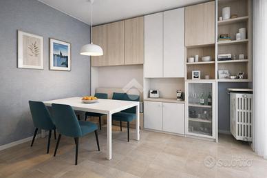 L'appartamento si compone di ingresso, luminoso soggiorno, cucina e tinello, doppi servizi entrambi finestrati, uno completo di doccia e l'altro di doccia multifunzione.