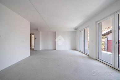 Proponiamo un quadrilocale caratterizzato da spazi generosi e ottimamente distribuiti. L'ingresso si apre su un ampio soggiorno con cucina a vista, un ambiente unico di ben 31 mq calpestabili, ideale per vivere e accogliere con comodità. Dal soggiorno si accede a un ampio terrazzo abitabile, perfetto per pranzi all'aperto, momenti di relax o per valorizzare ulteriormente la zona living con uno sfogo esterno funzionale e vivibile. Un pratico disbrigo conduce alla zona notte, dove trovano spazio tre camere da letto ben proporzionate e due bagni, di cui uno finestrato, garantendo luminosità e aerazione naturale. Gli spazi risultano equilibrati e pensati per offrire comfort e privacy a tutta la famiglia. L'immobile presenta finiture moderne e materiali di qualità: infissi in PVC con triplo vetro, tapparelle elettriche, impianto di riscaldamento e raffrescamento a pavimento, ventilazione meccanica controllata e sistema di deumidificazione integrato, per un'aria sempre pulita e un clima ideale. Il complesso è dotato inoltre di impianto fotovoltaico centralizzato, che contribuisce a ridurre ulteriormente i consumi energetici. I pavimenti in gres porcellanato assicurano resistenza e facilità di manutenzione, mentre il portoncino blindato garantisce sicurezza e tranquillità. All'interno del Residence sono presenti vialetti illuminati, un'area giochi per bambini, posti auto condominiali e la possibilità di acquistare cantina e box auto, singolo o doppio, con portone motorizzato e pannelli metallici coibentati. Il Residence si compone di sei palazzine indipendenti, caratterizzate da un'architettura moderna e studiata per offrire comfort e funzionalità. L'appartamento è attualmente in fase di finitura e viene venduto non arredato, lasciando la possibilità di personalizzare gli interni secondo le proprie preferenze. La posizione è tranquilla ma ben servita, a pochi minuti dal centro e vicino a tutti i principali servizi. Mori è un paese soleggiato e accogliente, con circa