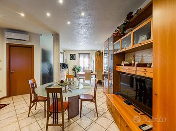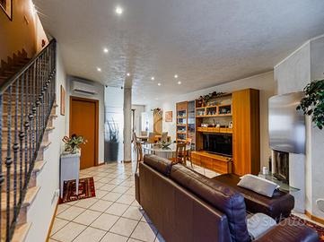 Villetta a schiera con giardino e box doppio - Mozzecane In via Don Giuseppe Bonizzato, in tranquilla zona residenziale di Mozzecane, proponiamo in vendita villetta a schiera del 2005, mantenuta in ottimo stato di conservazione. L'immobile si sviluppa su più livelli ed è dotato di giardino privato fronte e retro. Al piano terra troviamo una spaziosa e luminosa zona giorno open space con soggiorno e cucina a vista, impreziosita da camino, ideale per momenti di convivialità. Completa il piano un bagno finestrato con doccia. Dal soggiorno si accede al piano interrato, composto da ampio disimpegno, lavanderia e box auto doppio. Al piano superiore, raggiungibile tramite scala in marmo, si sviluppa la zona notte con due camere da letto mansardate di generose dimensioni e un bagno finestrato con vasca. Soluzione ideale per chi cerca indipendenza, spazi ben distribuiti e un contesto tranquillo, senza rinunciare alla comodità dei servizi.